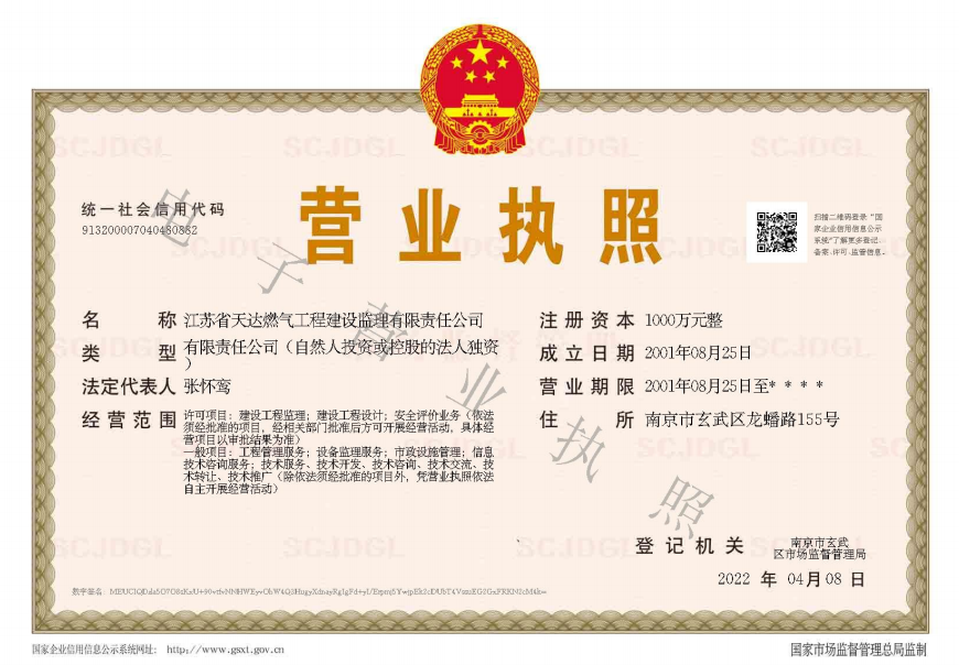 江蘇天達工程監理咨詢有限公司(原江蘇省天達燃氣工程建設監理有限責任公司,于2022年6月更名為江蘇天達工程監理咨詢有限公司)經江蘇省建設廳和省工商管理局于2001年8月批準的股份制企業。專業從事燃氣、熱力、天然氣門站、LNG場站、LPG場站、輸油氣管道、第三方巡查等工程技術監理服務,江蘇省內較早專業從事燃氣工程監理的甲級資質公司,國內領先的燃氣專業工程監理企業......【查看更多】
