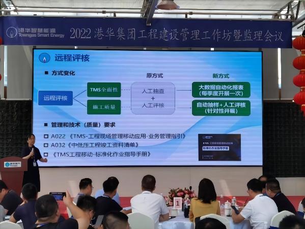 港華集團席丹副總裁結合港華工程管理最新動態,作了題為“持之以恒,質效并進”的主旨發言。港華集團工程部陸琴總監結合工程建設管理評核最新成果,介紹了TMS移動應用自動化評核情況并提出了改進建議,強調了工程建設合規性管理和質量安全管控重點。來自港華集團蘇浙區域、西南區域、華南區域及皖贛區域工程管理代表分別介紹了各區域工程管理最新動態和經驗分享。