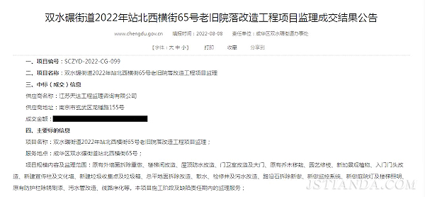 天達監理四川分公司繼2022年7月中標斷崖班至元壩鎮高壓管線項目后,再傳喜訊。8月8日又成功中標成都市成華區雙水碾街道2022年站北西橫街65號老舊院落改造工程。四川分公司在本次招標項目中,憑借過硬的專業素養,扎實高效的作風,良好的企業信譽,以絕對優勢順利中標。