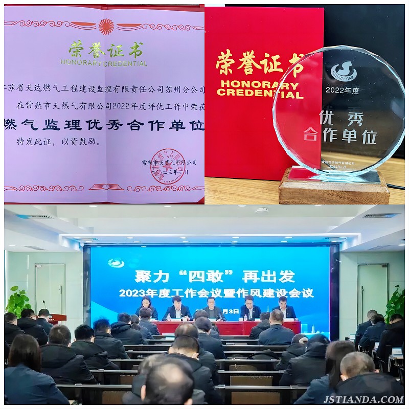 近日,監理公司蘇南分公司業主方陸續召開工程建設表彰會議,對2022年先進單位和個人進行表彰。其中,蘇南分公司在常熟市天然氣公司2023年度工作會議暨作風建設會議中榮獲 “優秀合作單位”稱號。監理人員張杰、謝黎明在蘇州港華燃氣有限公司2022年度工程建設“標桿班組、先進個人”評比中,獲得“優秀現場監理人員稱號”。同時,由于我司過硬的監理業務水平和積極的服務態度,蘇州新區監理部負責人韓秀和全體監理成員還收到了蘇州華潤燃氣有限公司的一封表揚信。