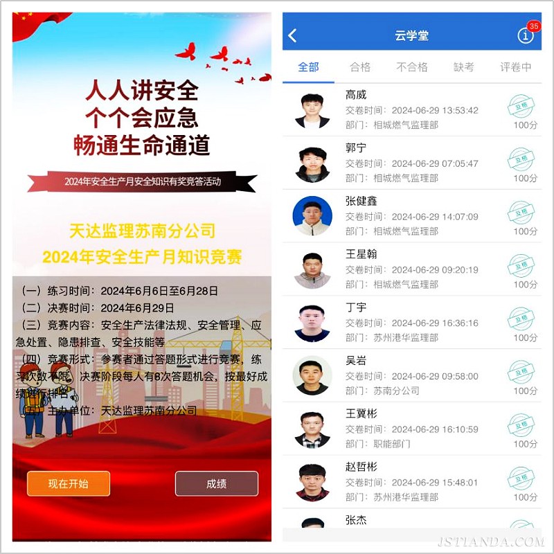 安全生產(chǎn)知識(shí)競(jìng)賽是蘇南分公司一項(xiàng)延續(xù)多年的“傳統(tǒng)保留節(jié)目”,今年的知識(shí)競(jìng)賽題庫不僅包括安全生產(chǎn)法律法規(guī)、燃?xì)夤こ态F(xiàn)場(chǎng)安全管理等內(nèi)容,還增加了安全生產(chǎn)相關(guān)事故案例、有限空間作業(yè)、隱患排查、應(yīng)急處置等方面的安全知識(shí)。活動(dòng)從6月6日開始至6月29日?qǐng)A滿結(jié)束,在練習(xí)階段,累計(jì)完成練習(xí)2000余次,98分以上23人,占比超過30%。決賽于6月29日上午開始,每人限3次機(jī)會(huì),每次不超過90分鐘,取最好成績(jī),按照得分最高,用時(shí)最短進(jìn)行排名。截止當(dāng)天20:00已全員完成答題。經(jīng)統(tǒng)計(jì),成績(jī)?nèi)亢细瘢?/font>98分以上45人,占比超過66%,有30人達(dá)到滿分,其中,相城燃?xì)獗O(jiān)理部、蘇州港華監(jiān)理部更是實(shí)現(xiàn)全員滿分,競(jìng)賽整體成績(jī)較上一年度再創(chuàng)新高。