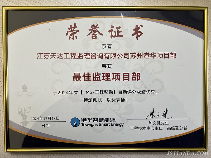 榮譽(yù)的加冕,不僅是對監(jiān)理項(xiàng)目部過去一年辛勤耕耘與卓越成就的高度贊譽(yù),更是對未來征程的深切鼓舞與鞭策。“長風(fēng)破浪會有時,直掛云帆濟(jì)滄海”,未來,蘇州港華監(jiān)理項(xiàng)目部將秉持初心,矢志不渝,以實(shí)際行動擦亮天達(dá)品牌,力爭為公司創(chuàng)造新的榮譽(yù)。