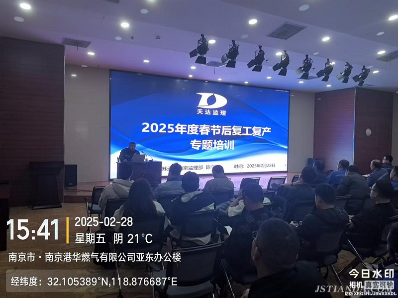 為深入貫徹落實市建委下發(fā)的《關(guān)于切實做好2025年春節(jié)后復(fù)工復(fù)產(chǎn)安全防范工作的通知》相關(guān)要求,確保2025年春節(jié)后各項工程能夠順利復(fù)工復(fù)產(chǎn),提升建設(shè)方、施工方以及監(jiān)理方的安全生產(chǎn)意識,規(guī)范安全生產(chǎn)行為,提高施工管理人員 、安全管理人員以及監(jiān)理人員的施工管理和安全管理的能力,2025年2月28日,南京港華聯(lián)合江蘇天達(dá)南京監(jiān)理部組織建設(shè)單位管理人員、施工單位項目負(fù)責(zé)人以及全體監(jiān)理人員在南京港華亞東辦公樓304會議室進(jìn)行2025年春節(jié)后復(fù)工復(fù)產(chǎn)安全培訓(xùn)工作。